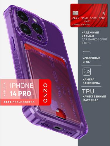 Onzo Противоударный чехол на iPhone 14 Pro с кармашком для карт, фиолетовый прозрачный