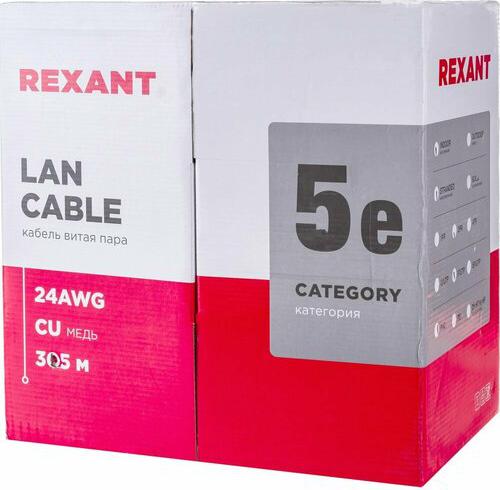 Rexant Кабель витая пара F/UTP, CAT 5e, PVC, 2PR, 24AWG, INDOOR, STRANDED, серый, 305м, цена за 1 бухта