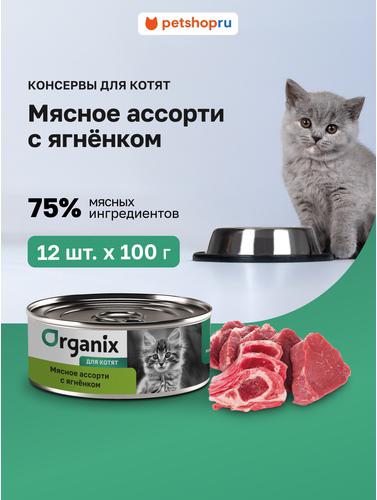 Organix Консервы для котят Мясное ассорти с ягнёнком, 12 штук по 100 г