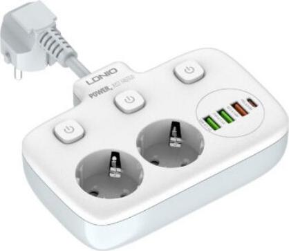 Ldnio Сетевой фильтр SE2435, 2 розетки, с/з, 10А / 2500 Вт 2 3 0.2 м 120 мм 25 мм 50 мм white