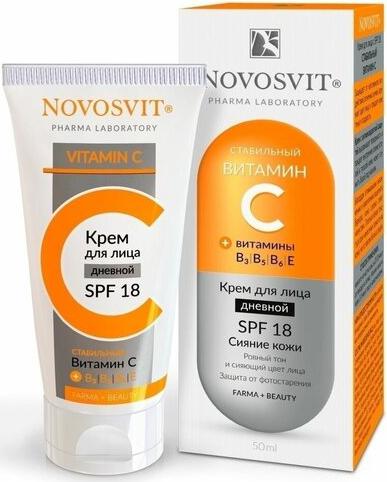Характеристики Novosvit Крем для лица cтабильный витамин С SPF18 / 50мл