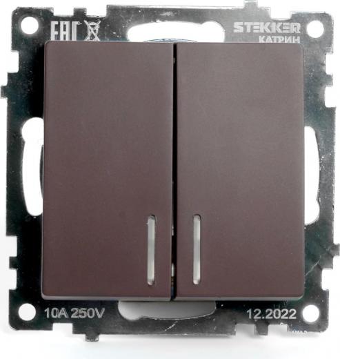 Stekker Выключатель 2-клавишный 250В, 10А, серия Катрин, шоколад, GLS10-7104-04, цена за 1 шт