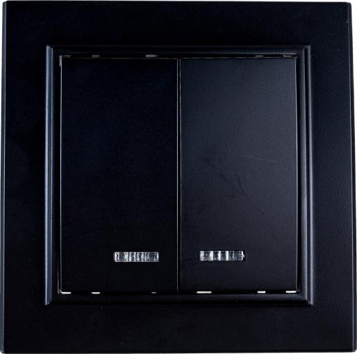 Stekker Выключатель 2-клавишный c индикатором, 250V, 10А, серия Эрна, PSW10-9002-03, черный, цена за 1 шт
