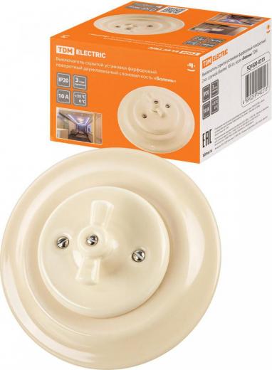 TDM Electric Выключатель скрытой установки фарфоровый поворотный 2-кл. с ручкой 10А сл. кость Болонь, цена за 1 шт